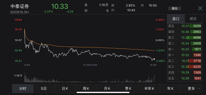 截至12月2日收盘,中泰证券股价为10.33元。