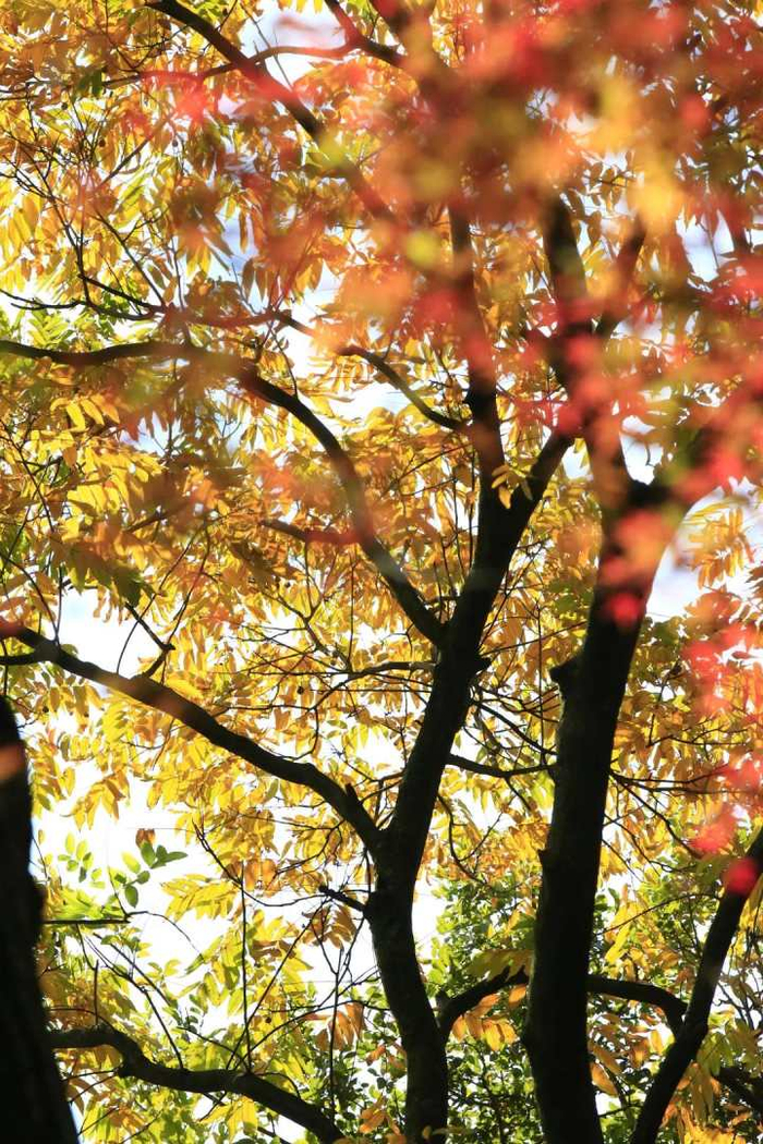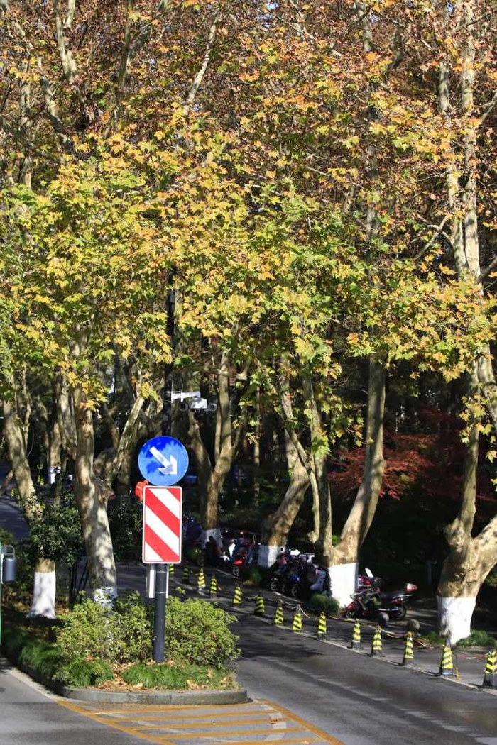杨公堤上种植最多的树木是悬铃木,目前悬铃木已落叶大半,略显萧瑟。然而正是悬铃木叶落,才使得两侧相对矮小的红枫与鸡爪槭等树木得到充足的光照,再加上低温的促进,开始逐渐变色。