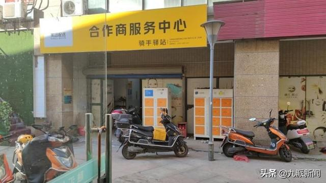 九派新闻走访距离该小区不远的一个美团配送站。