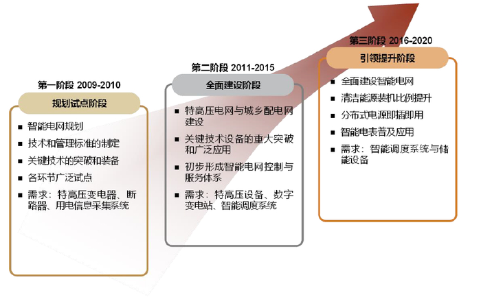 图表:2009-2020年国家电网三阶段智能电网建设规划