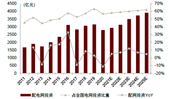 图表:“十四五”期间配网投资及占比预测