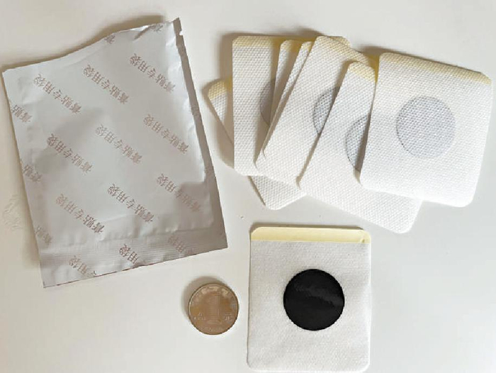 撕开袋口,内里10片药贴各呈6厘米见方大小,中间印着一片比一元硬币大一圈的黑色圆形膏药,闻起来有淡淡薄荷味,用手触摸几乎没有厚度。“贴这个就不用吃药了?”面对记者询问,商家一改宣传图中的斩钉截铁,均称如果患者已经在吃药打针,考虑到药物有依赖性,不可贸然停药,配合膏贴继续用药效果更佳。