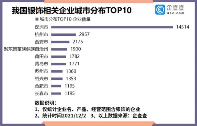 银饰企业城市分布:深圳最多,其次是杭州、西安
