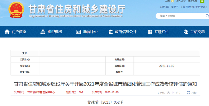 甘肃省住建厅开展2021年度全省城市精细化管理工作成效考核评估