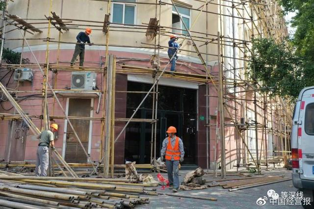 2019年11月2日,“上海红楼”外开始搭建建筑用钢管架,工头谨慎答称,他们只负责搭架子,至于搭架子要干什么,不知道。当地相关部门几天前在楼前新建了一根黑色的监控柱,摄像头正对该楼的大门。门前灰色钢柱上的摄像头,原本是一直“盯着”惠民路西向的十字路口的,这几天开始“不务正业”,扭头死盯红楼的门口,或门口聚集的人群。《等深线》记者程维摄