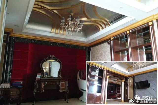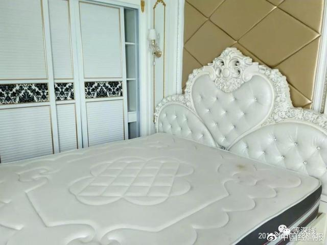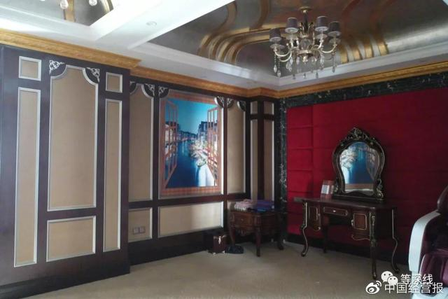 “1号套房”内现残存有几样家具,有床头柜、矮柜及梳妆台,以及一台豪华如太空躺椅状的电脑全自动按摩椅。这些物件,款式、材质都极为考究,常见于五星级酒店的总统套房或行政套房。