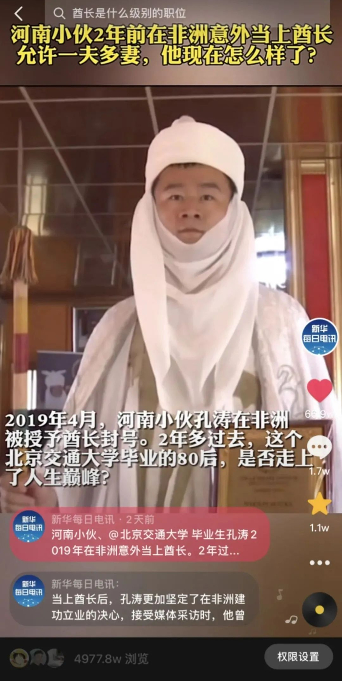 其实,孔涛不是第一个在非洲受封酋长的中国人