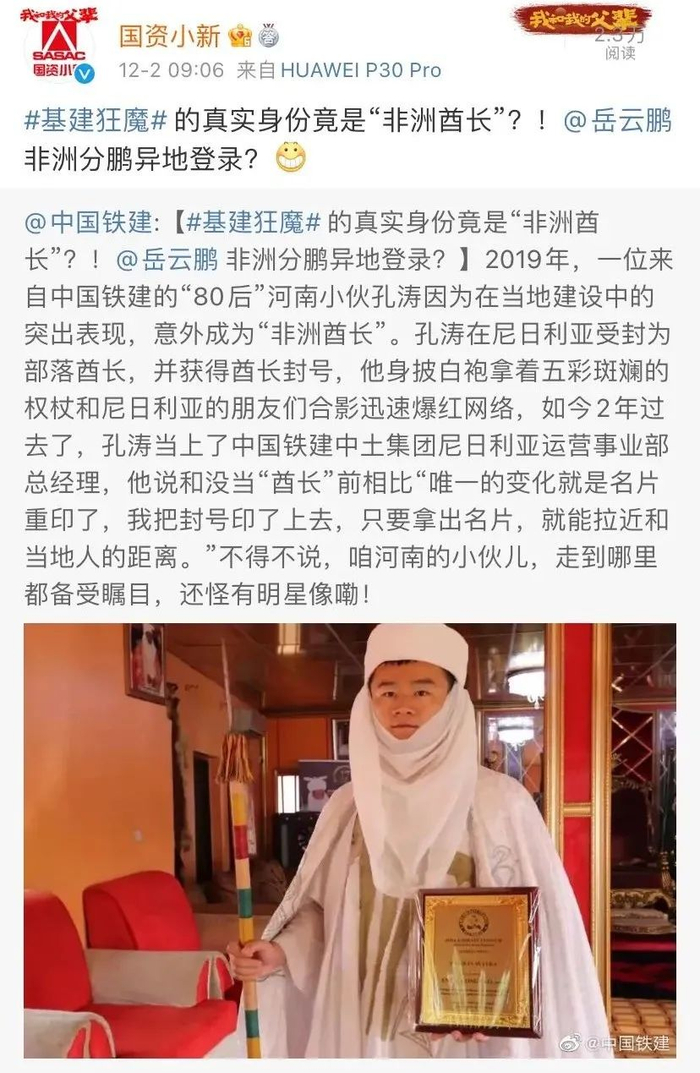央企职工成为非洲酋长