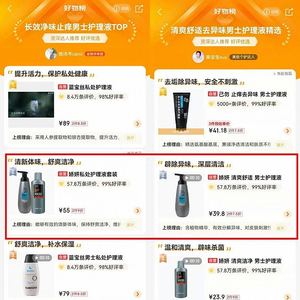 记者在淘宝天猫平台搜索发现,他秘secrethem男士私处护理液表现抢眼,截至12月1日,该单品月销达1万+,全网热卖50万+瓶;此外,妇炎洁男士私处清洗液月销也达1万+,理然男士专用私处洗护液月销8000+,蓝宝丝(Bluetex)男士私处护理液月销7000+。