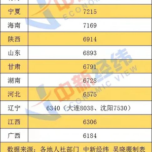 据中新经纬不完全统计,目前北京、天津、河北、辽宁、山东、陕西、广东、广西、青海、宁夏、海南、甘肃、湖南、江西共14省份公布了养老金计发基数。其中,北京以10534元居首,广西以6184元暂居末位。