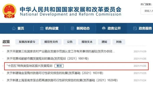 该规划是国家“十四五”重点专项规划,所指特殊类型地区包括资源型地区、老工业城市、革命老区、边境地区、生态退化地区和欠发达地区。