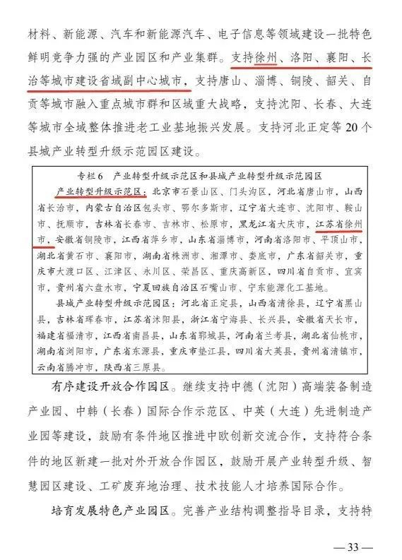 11月26日,国家发展和改革委员会发布《“十四五”特殊类型地区振兴发展规划》。其中提到支持徐州等城市建设省域副中心城市,打造徐州产业转型升级示范区,重点培育发展徐州装备与智能制造产业。