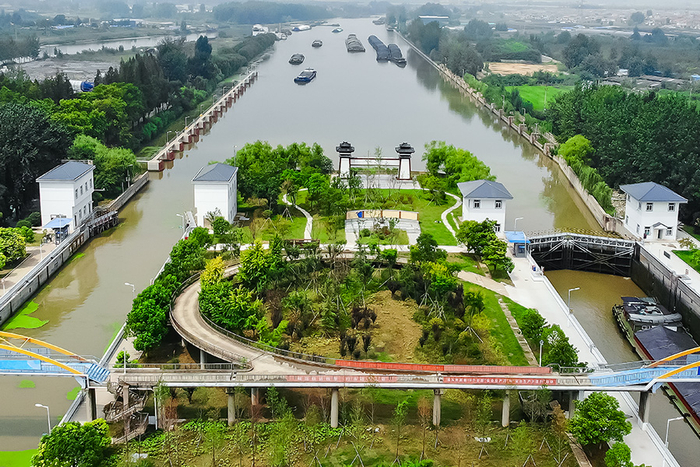 京杭大运河徐州段上的解台船闸。图|图虫创意