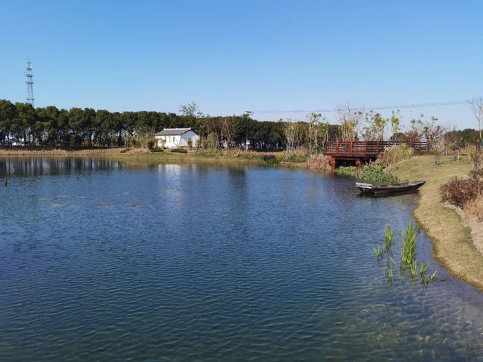 近日,位于元荡湖畔展现上海乡村特点、江南水乡韵味、数字智慧特征的江南圩田样板区在青浦区金泽镇新池村基本建成。这里以江南圩田圩岸为场景,绘制一幅“一分林、一分庄、三分水、五分田”的原乡画卷。