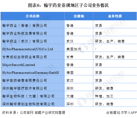 翰宇药业下设坪山分公司、武汉子公司、香港子公司、甘肃成纪子公司、云南子公司、德国子公司等分支机构。