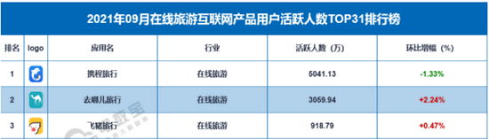 根据网经社近期发布的《2021年9月在线旅游APP用户活跃TOP31榜》,携程旅行以5041.13万的月活位列第一,但环比却减少1.33%,位居第二的去哪儿旅行环比则增加2.24%。