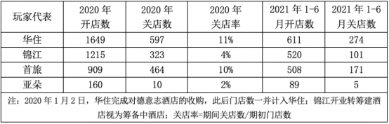 为此,我们梳理了华住、锦江、首旅、亚朵截至2019年底、截至2020年底、截至2021年6月底的门店数,及在此期间各家开店、闭店的情况。