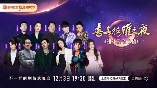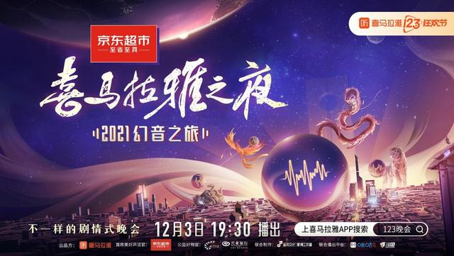 12月3日19:30,由京东超市出任首席美好声活官、兴业银行担任公益好物官的“喜马拉雅之夜·2021幻音之旅”(以下简称“喜马之夜”)在喜马拉雅、咪咕、斗鱼、北上广深四地部分影院同步播出。观众还可通过吉利、比亚迪的车机端喜马拉雅App,花筑民宿的部分门店收听或观看这台晚会。