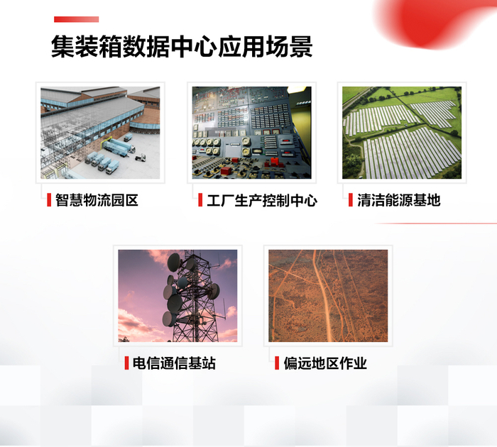 一是一体式集装箱数据中心。一体式集装箱数据中心具备标准化快速交付能力,适用于有整体搬迁需求且提供数据中心运行环境有困难的场景,如物流,能源,制造生产控制中心;电信,广电,科研通信基站;有野外工作需求的数据中心,应急通信或算力保障,有边缘计算需求的场景。