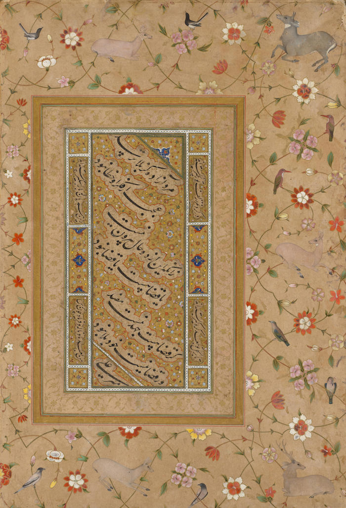 “花与鸟装饰的书法”——源自印度莫卧儿帝国皇帝沙贾汗的图集 (16世纪)