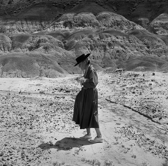 Georgia O'Keeffe and her iconic gaucho hat, 1963, Black Place, New Mexico © Todd Web