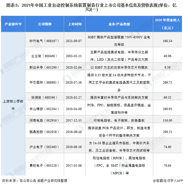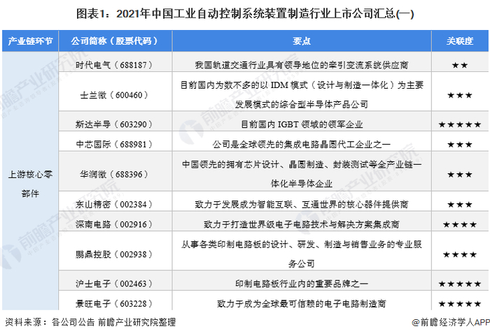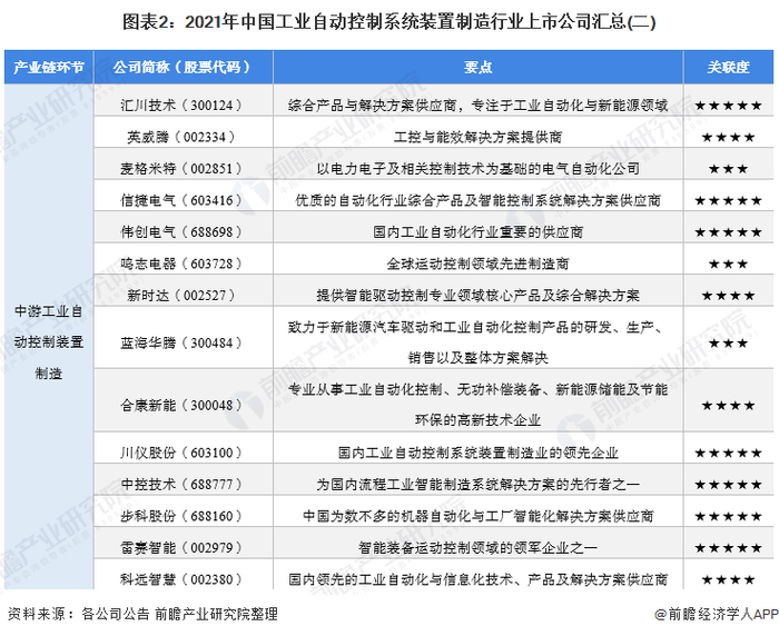 本文核心数据:工业自动控制系统装置制造行业上市公司汇总、工业自动控制系统装置制造行业上市公司基本信息表
