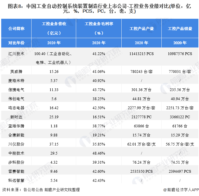 行业主要上市公司:目前国内工业自动控制系统装置制造行业的上市公司主要有汇川技术(300124)、英威腾(002334)、麦格米特(002851)、信捷电气(603416)、伟创电气(688698)、川仪股份(603100)等