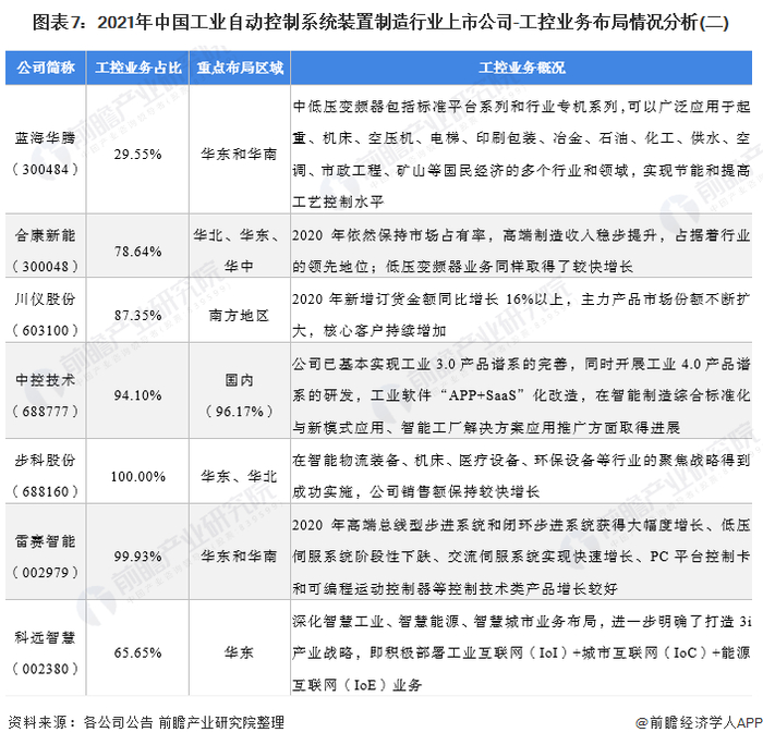 2、工业自动控制系统装置制造行业上市公司业务布局对比