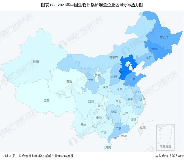从生物质锅炉企业区域分布来看,华北地区是我国生物质锅炉行业的重要竞争区域。从省份来看,河北省的企业数量占比最多,其次在山东、吉林、黑龙江等地也有一定数量的生物质锅炉企业分布。