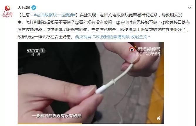 近日,媒体再发视频,提醒:老旧数据线一定要换!