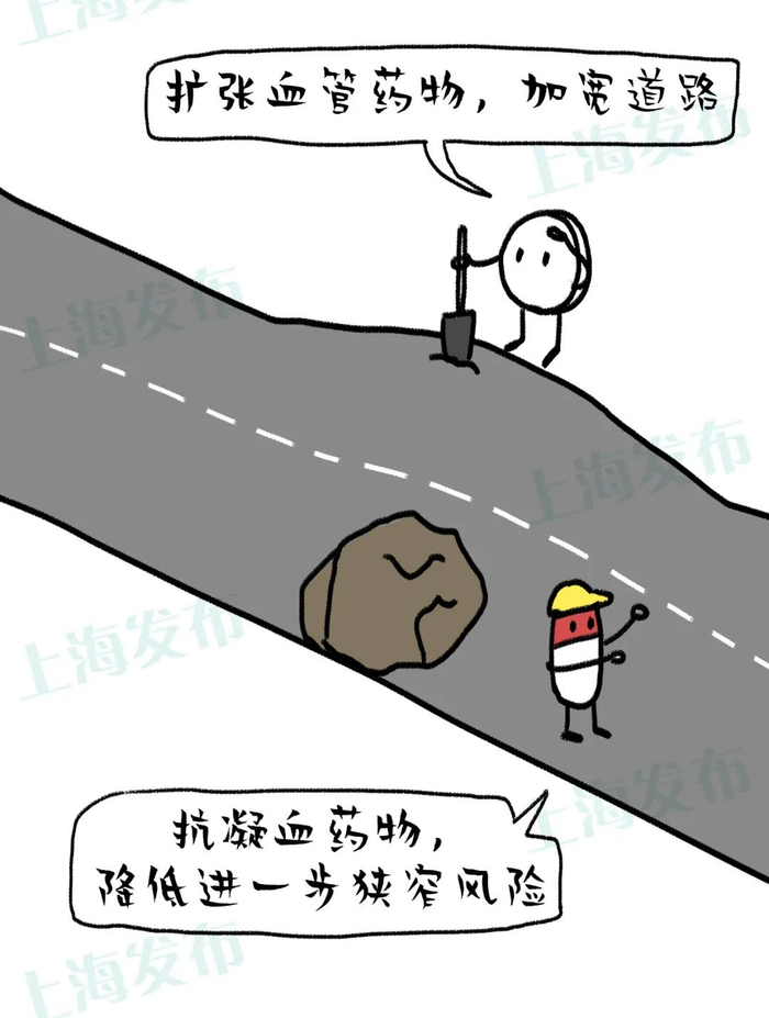 抗血小板药物和扩张血管药物。