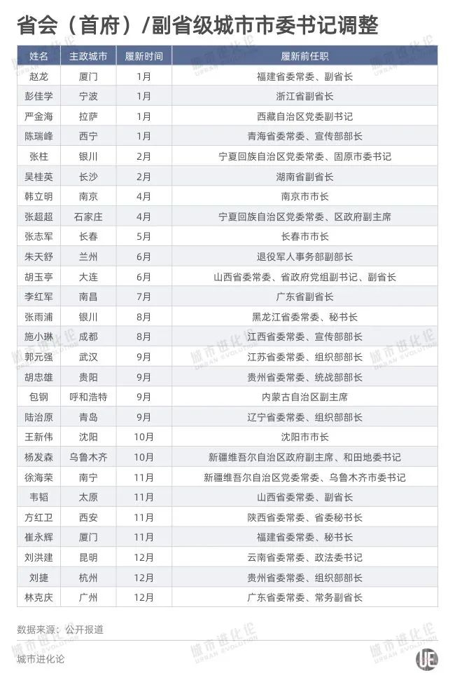 广州既是省会城市,也是副省级城市。记者统计发现,今年以来已经有12座副省级城市、21座省会城市更新了“一把手”。