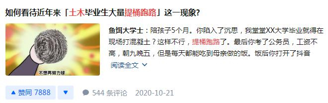 为此,近年来有关土木工程学子提桶跑路的声音,往往一呼百应。