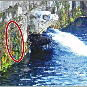 该“出水口”紧挨着最西侧的虎头,水流下泄形成的水柱清晰可见。“是不是也得给这股水装一个虎头?”雍先生调侃道。