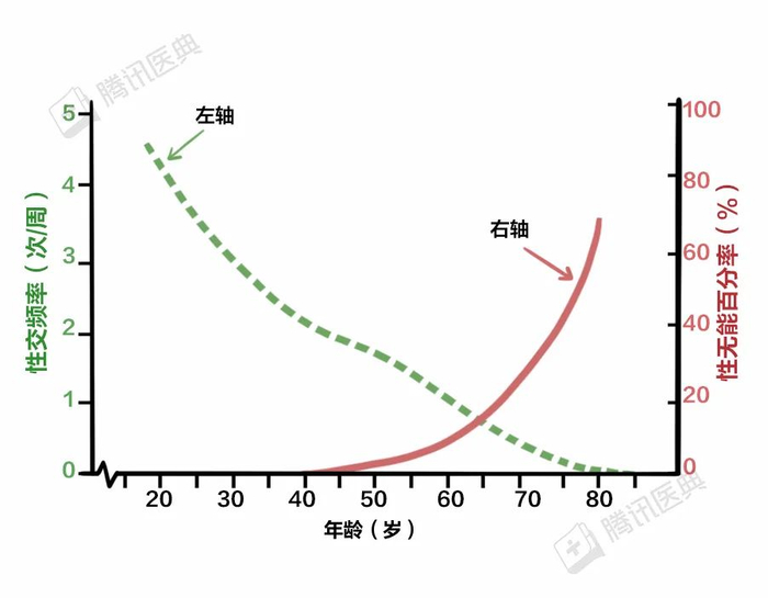 (已婚男性不同年龄段的性交频率和性无能百分率。来源:参考文献[4])