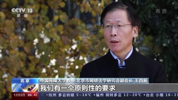 中国传媒大学教授 北京市网络法学研究会副会长 王四新:我们有一个原则性的要求,就是必须确保未成年人的信息安全,还有他(她)因为线上而产生的线下行为的安全,只要存在安全漏洞,不管是什么方面的误导性的信息,或者说诱导青少年采取不正当行为,这些平台都有责任去避免,也都有责任去做积极的防范措施。如果平台没有做好防范措施,或者说没有能力去做好,我们的处罚就要及时地跟上去。