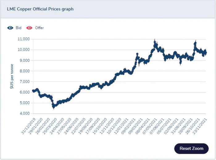 2020-2021年LME(伦敦金属交易所)铜价走势,图片来源:LME官网