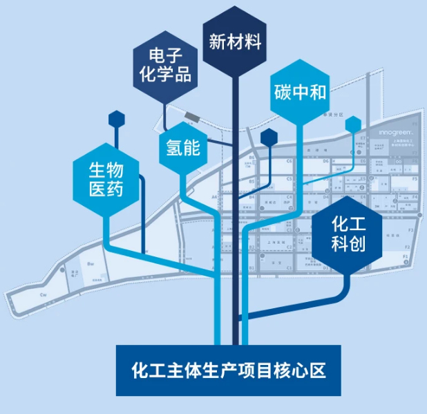 上海化工区将围绕化工主体生产核心区域,外侧按照相对集中、灵活安排的方式规划电子化学品、新材料、生物医药、氢能、碳中和、化工科创等功能板块,进行产业引导。