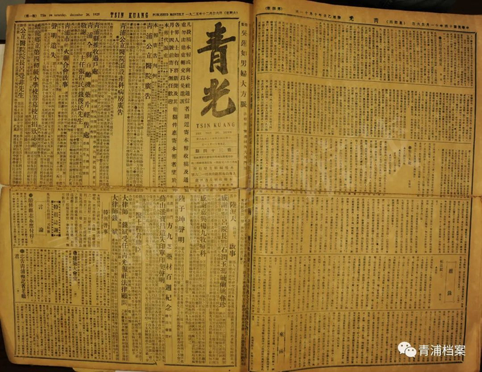 《青光报》于1922年9月10日创刊。由姚湘涛、孔如霖、徐造初三人会同青浦教育界人士组织的“青光社”主办。