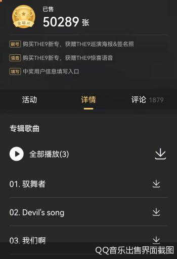 12月5日,THE9最后一张EP《THE NINE》正式上线发行。北京商报记者注意到,该EP内含《驭舞者》《Devil’s song》《我们啊》三首单曲,截至当日15时,在各个渠道累计销量达到6.28万张。