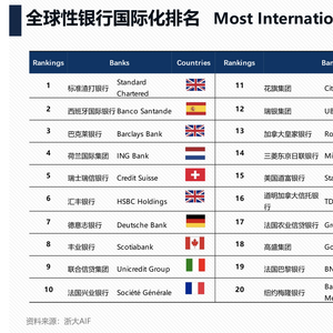 最新全球银行国际化排名出炉:渣打银行连续六年位列首位