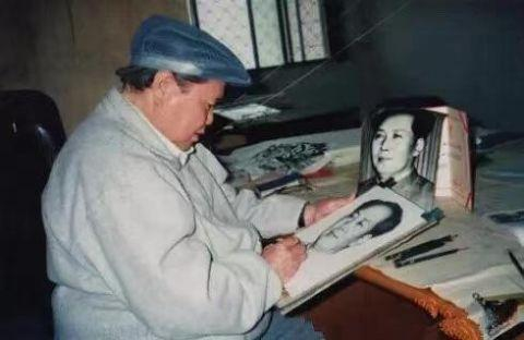 刘文西正在创作毛主席肖像画