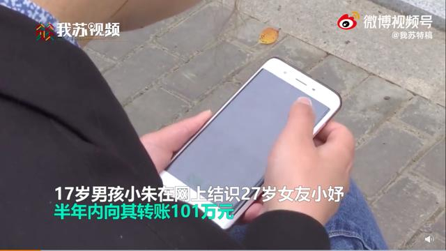 据我苏特稿视频报道,江苏南通17岁的男孩小朱,在网上结识了27岁的女友小妤,为了表达爱意,小朱半年内将父亲手机银行里的101万元转给女友。