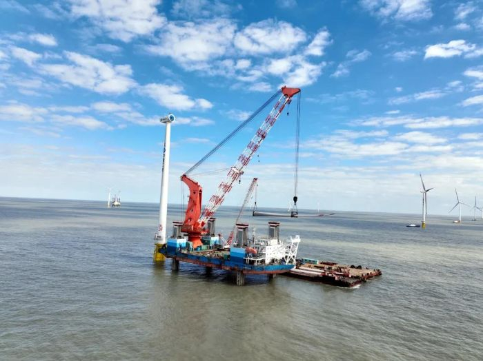 原标题:江苏大丰海上风电项目首批机组并网发电
