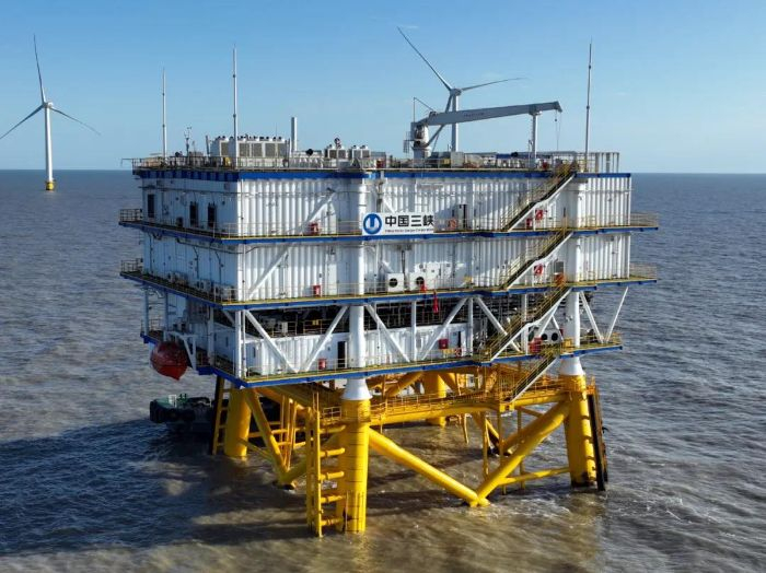 ●为减少因海缆电容效应而导致的无功损耗,项目创新性地引用带新型抽能电抗器的海上高抗站,为国内首次应用,解决了海上风电长距离电力输送难题。