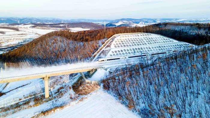 设计团队采用完善路基截排水措施、换填防冻胀填料、设置连续梁温度伸缩调节器、细化隧道深埋排水设施、隧道明洞喷涂防水涂料、优化轨道设计结构和配型、选用耐寒接触网和电力信号设备、安装道岔融雪系统、特殊地段设置挡雪墙等防寒抗冻措施,确保了高寒地区列车的行车安全。