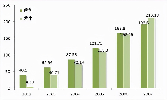 2007年,蒙牛在业绩上赶超伊利,拿下“中国乳业第一”。