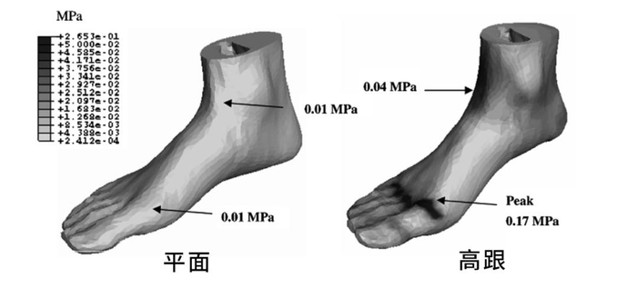 Development of a finite element model of female foot for high-heeled shoe design,Clin Biomech (Bristol, Avon). 2008;23 Suppl 1:S31-8. doi: 10.1016/j.clinbiomech.2007.09.005.