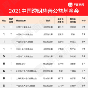 2021年度透明慈善公益基金会榜单:四家基金会并列第一