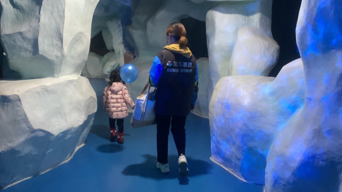“儿子快4周岁了,女儿1岁多,都是奶奶在带的。”谈到孩子,曾雪微声音轻轻的,透着遗憾。今天和老公带着两个娃赶到极地海洋公园,小两口显然是分过工的,一个管大的,一个负责小的。“难得的机会,所以今天特意调休,陪孩子。”别看曾雪微瘦瘦小小的,抱起孩子来却稳稳当当。